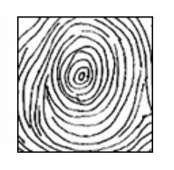 型態:中間部分有兩個絞在一起的箕紋,但朝外部分有多層圓形環包覆,看起來像圓形中有一個小太極圖在核心處。 意義:傾向同時間掌握二個目標,自我意識仍強,能量消耗在分散的目標上。